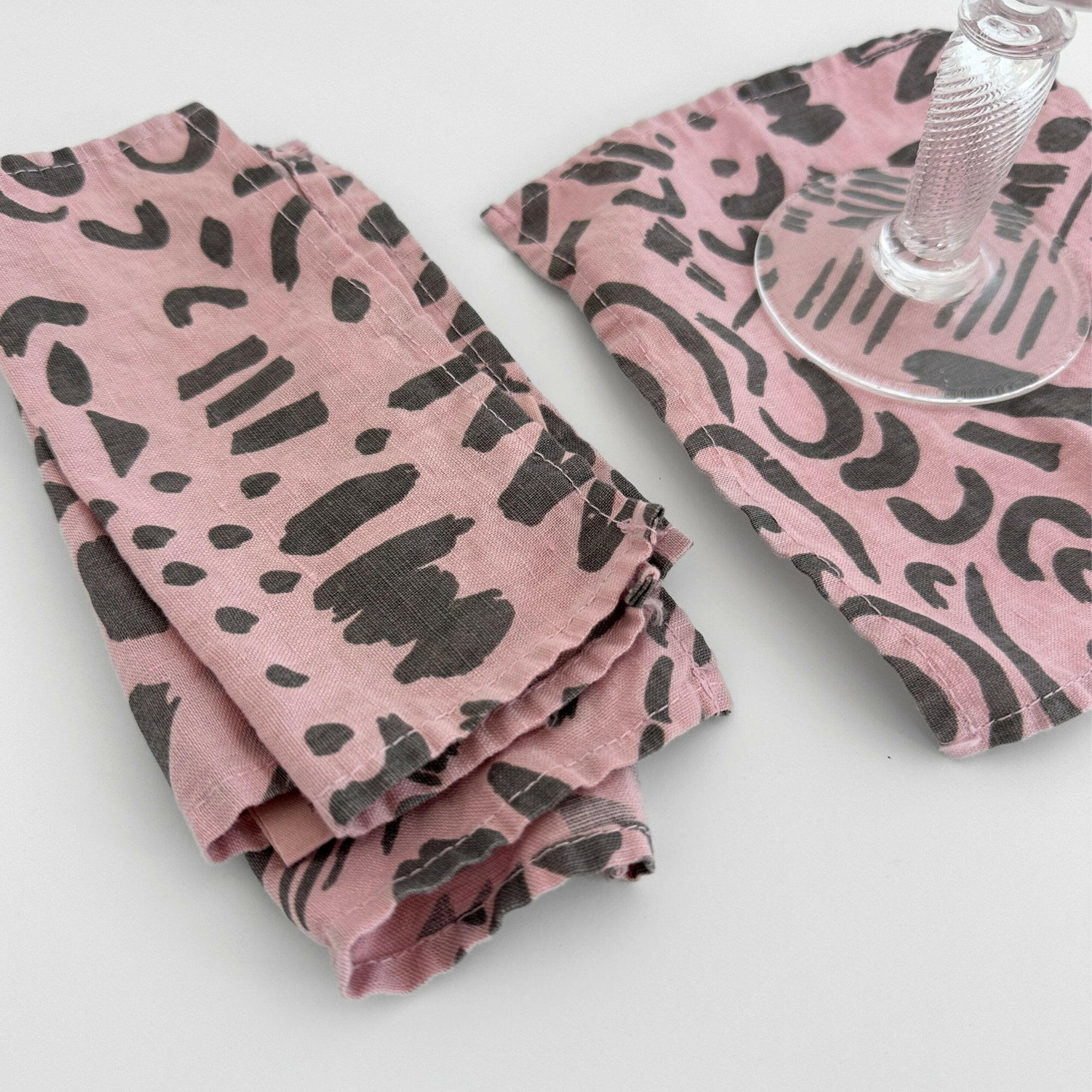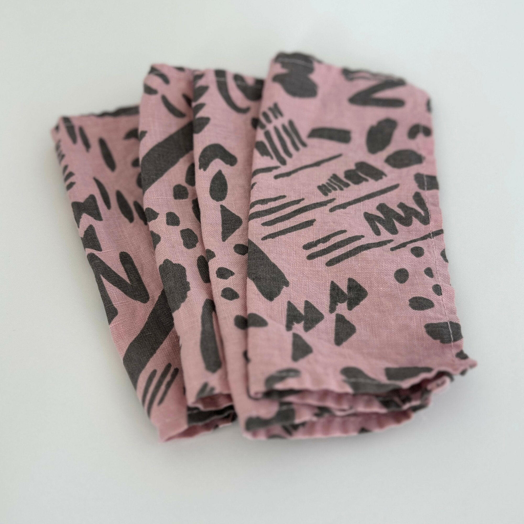 Caring for your Jenny Pennywood napkins is so easy because they're machine washable. Spot clean as needed or toss them in the wash on cold. Whether you choose to tumble dry or hang them out to dry, these napkins will retain their softness and quality over time. Like a fine vintage textile, the screen printed colors and over-dyed hues may gently fade with each wash, enhancing their lived-in appeal and adding to their charm.